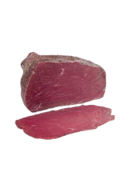 | Beschreibung | Aus der Keule vom Rind, gepöckelt, sehr feiner, würziger Geschmack |