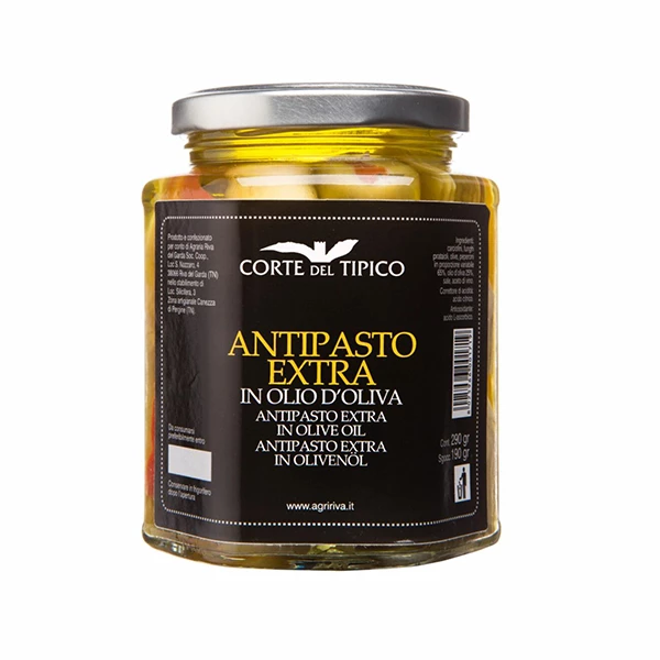 ZUTATEN: Artischocken, Champignons, Gurken, Oliven, Paprika, Olivenöl, Salz, Weinessig, Aromastoffe, Säureregulator: Zitronensäure, Antioxidationsmittel: L-Ascorbinsäure