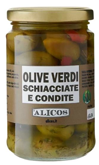 | Zutaten | Grüne Oliven Olivenöl Extra Vergine Sellerie Petersilie Paprika Origano Minze Weinessig Salz Zitronensäure |