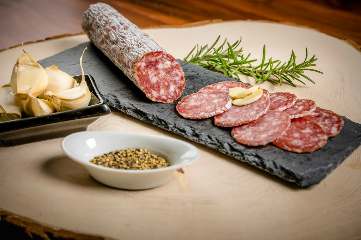 | Zutaten | Zutaten: Schweinefleisch (99g/100g Endprodukt); Rindfleisch (16g/100g Endprodukt); Rückenspeck; Salz; Gewürze; Dextrose; Maltodextrin; Aromen; Antioxidationsmittel: Natriumascorbat; Zucker; Glucosesirup; Pfeffer; Knoblauch; Starterkulturen; Konservierungsstoff: Natriumnitrit, Kaliumnitrat |