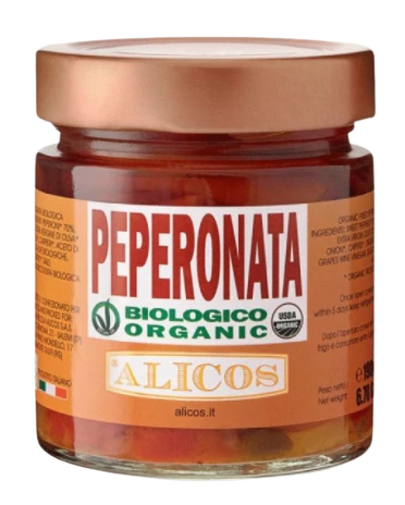 | Produkt | Peperonata, eingelegte Paprika-Scheiben 190g aus biologischem Anbau 100% Vegan |