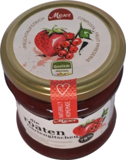 Fruchtaufstrich „die Roaten Gartengitschen“ – Erdbeer- Ribis, 340ml – Moser KG Bäckerei