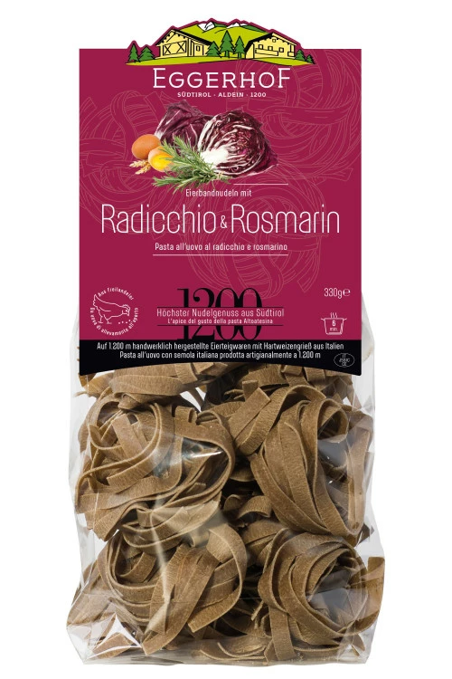 | Produkt | Nudeln aus Hartweizengrieß, frischen Freilandeiern, getrocknetem Radicchio und Rosmarin |