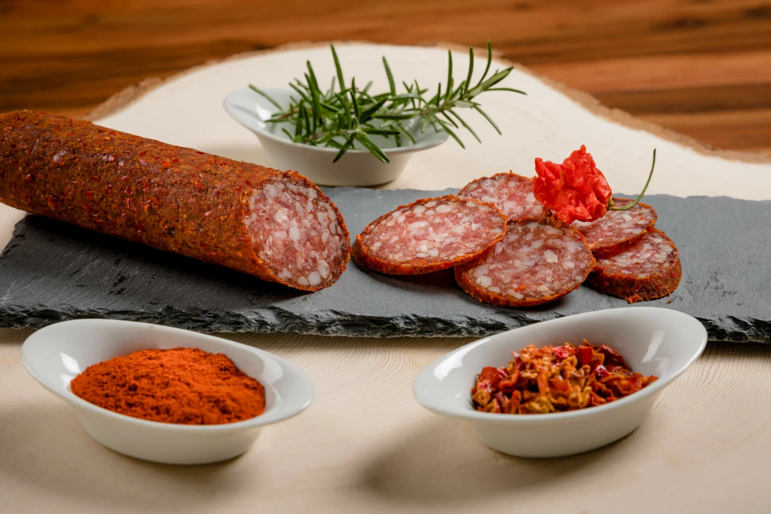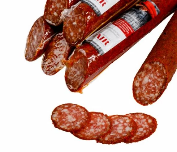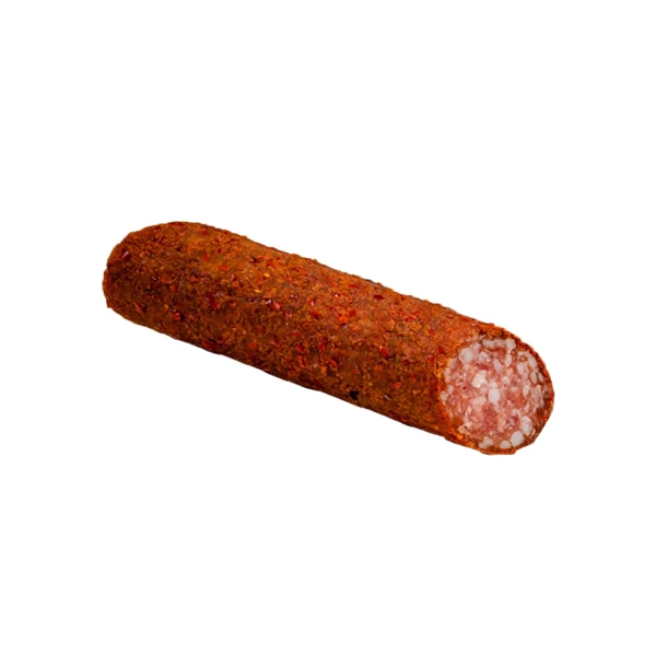 | Zutaten | Schweinefleisch (98g/100g Endprodukt); Rindfleisch (16g/100g Endprodukt) Rückenspeck; Salz; Gewürze; Dextrose; Maltodextrin; Aromen; Antioxidationsmittel: Natriumascorbat; Zucker; Glucosesirup; Chilipulver; Knoblauch; Starterkulturen; Konservierungsstoff: Natriumnitrit, Kaliumnitrat |